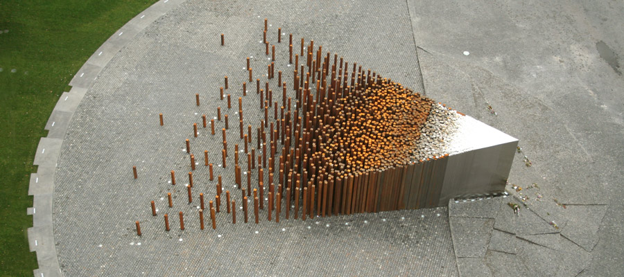 personal, engrossed remembrance. The rustically corroded, man-sized,