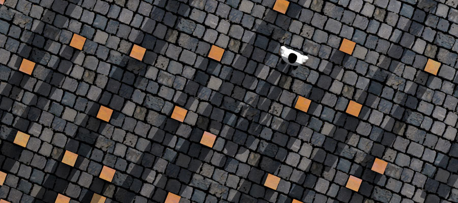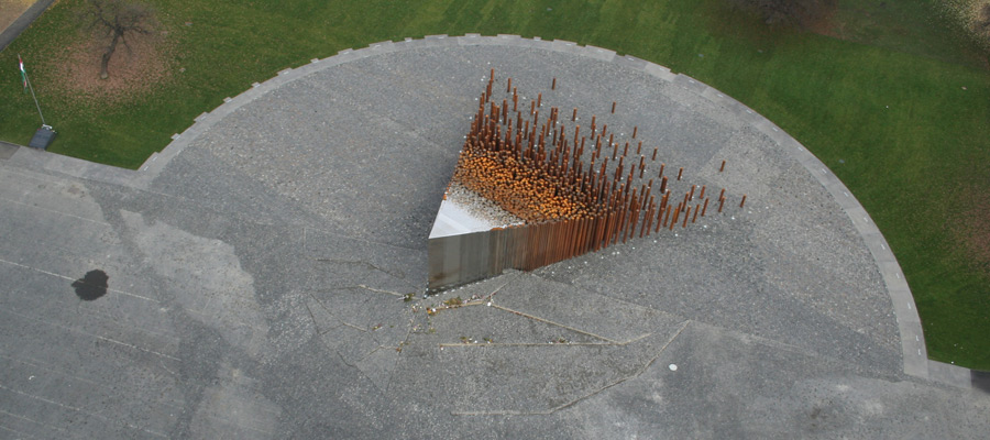 personal, engrossed remembrance. The rustically corroded, man-sized,